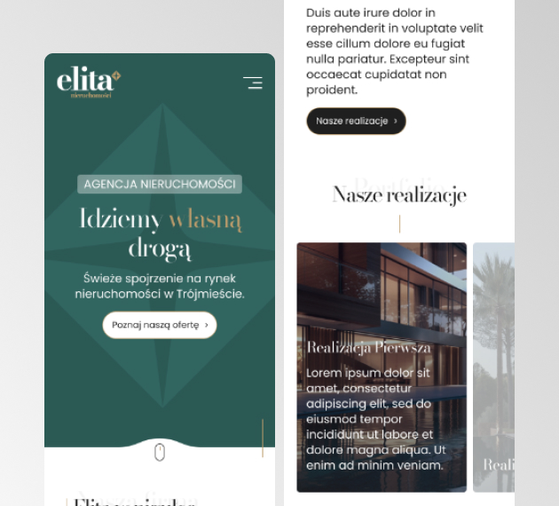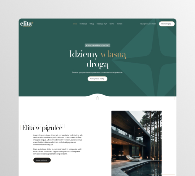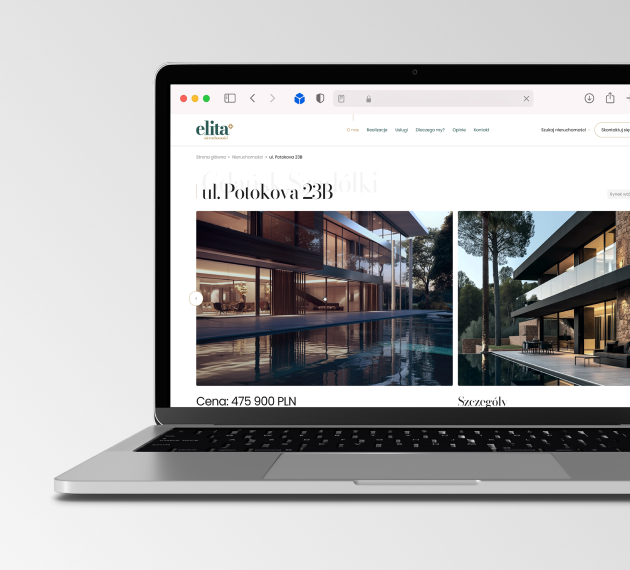 W branży nieruchomości pierwsze wrażenie decyduje o zaufaniu. Dla firmy Elita Nieruchomości zrealizowaliśmy kompleksowy projekt identyfikacji wizualnej oraz stronę internetową, które wspólnie tworzą wizerunek lidera rynku premium.