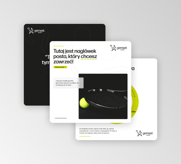 Projekt dla Gemset Mental był naszą drugą realizacją w obszarze psychologii sportu, tym razem z trenerem mentalnym specjalizującym się w tenisie ziemnym. Klient, otwarty na nowoczesne podejście do projektowania, pozwolił nam na stworzenie kompleksowego wizerunku.